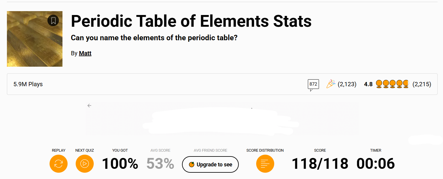 Recently, I've been on a quest to learn all the elements. I got 116/118 without cheating.