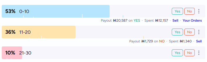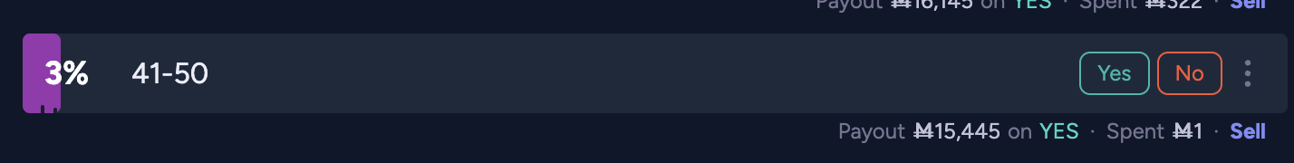 Also, the betting market is not incentivized to connect with the poll in any way. Most beneficial option is to vote in a way that causes the most change, and bet to follow suit. The game theory linked would be like if you gave all the mana winnings to the people who guess correctly, not those who bet correctly.