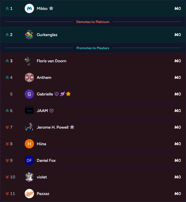 After Season 34, 25 traders will stay in Diamond League or will be promoted to Masters League.