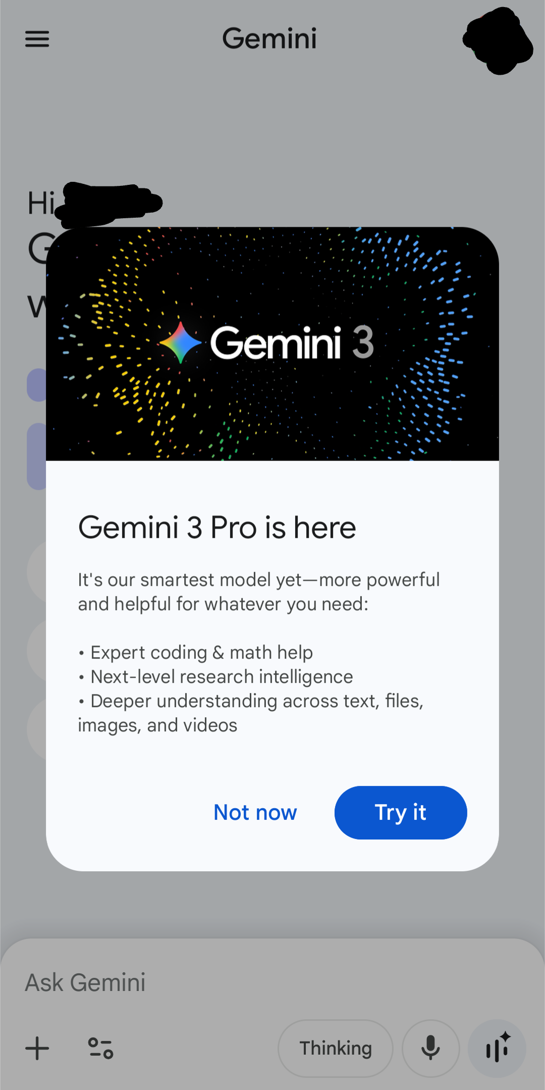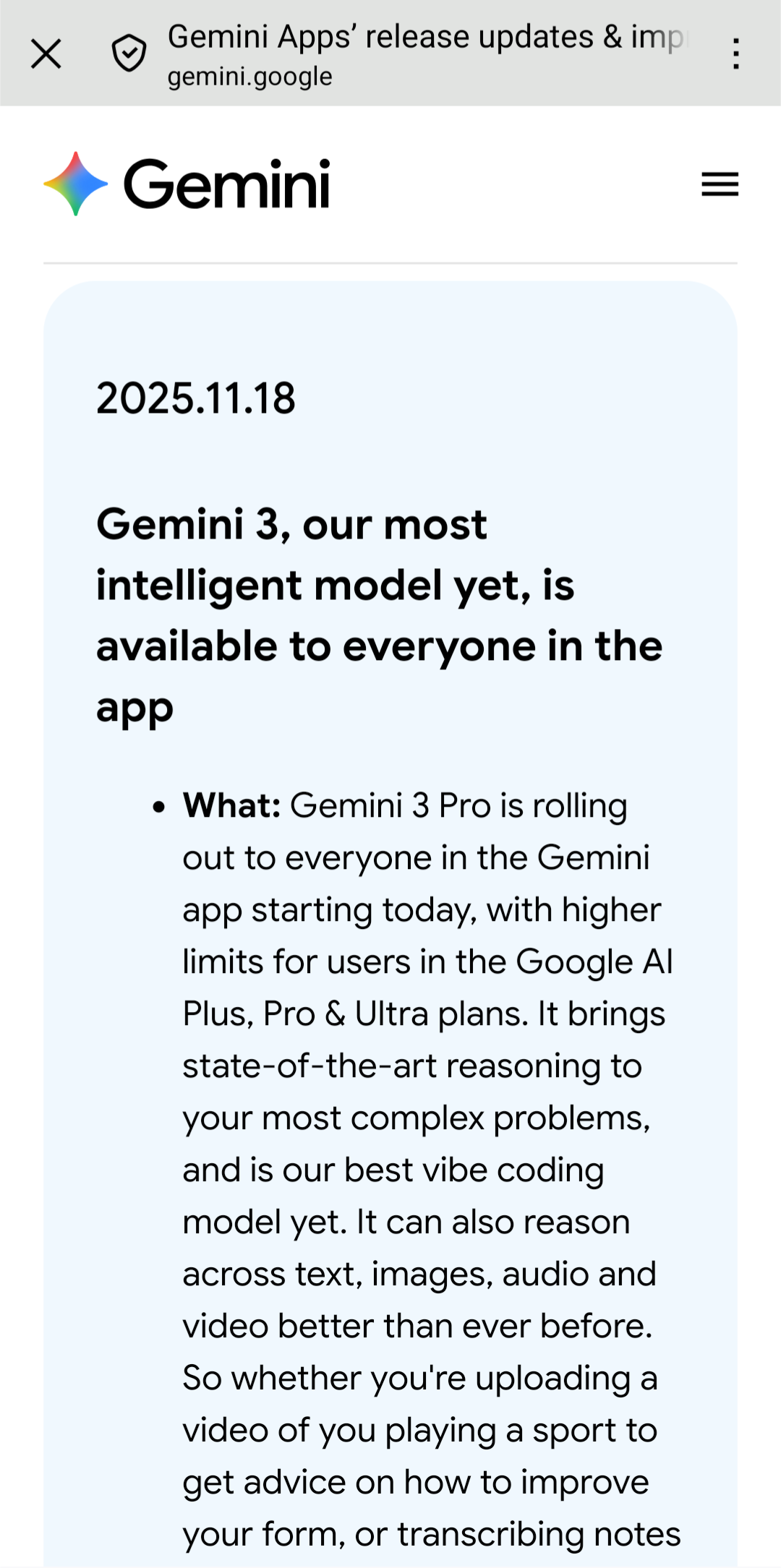@MiaCat Bad bot. Preview does not count. Gemini 3 is available on a chat app without using the word preview which according to the market description counts as released.