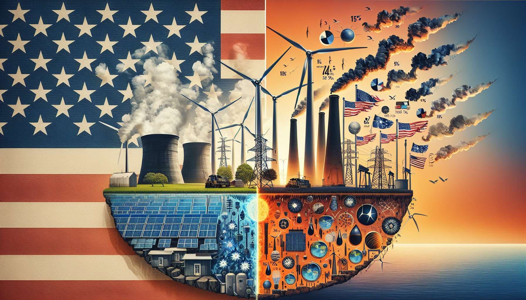 What percentage of US energy will be produced by each source in 2050?