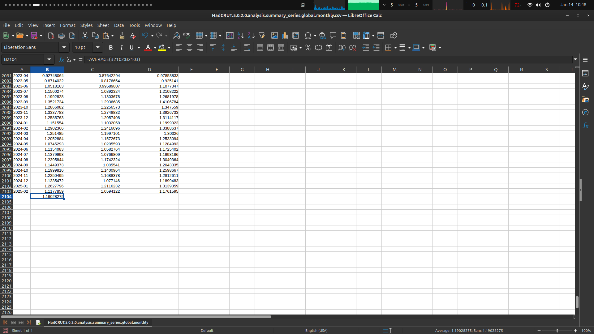 You see where it gets the 1.19 C for 2025 (which is just Mean of Jan and Feb) ( this is 1.54 after changing base line).