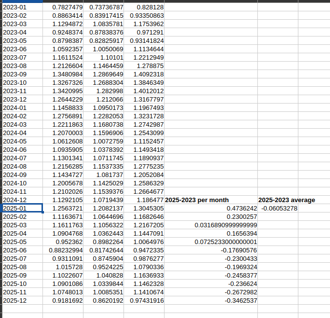 (2) minor detail: the NASA data although fairly robust in terms of coverage (from what I would subjectively say) and is still considered “official”, it relies on ghcnm for its land data, which in turn has been affected by the ongoing NCEI upgrade so it has slightly? less stations for its data than say 2024 or 2023 (I have a program that looks at a different baseline, and excluding stations without enough records in the baseline, for the December 2025 I think it would be around 70-80% of stations compared to 2024 if I recall). The numbers are always revised in the future releases anyway but there is a decent chance I believe 2025 could drop further in the future given a comparable quantity of data once the upgrade is complete. This may seem beside the point, but I’m just saying the quality of the numbers is different, and this is important if you are comparing nearby years (2025 vs 2023,2024) while discounting the margin of error.