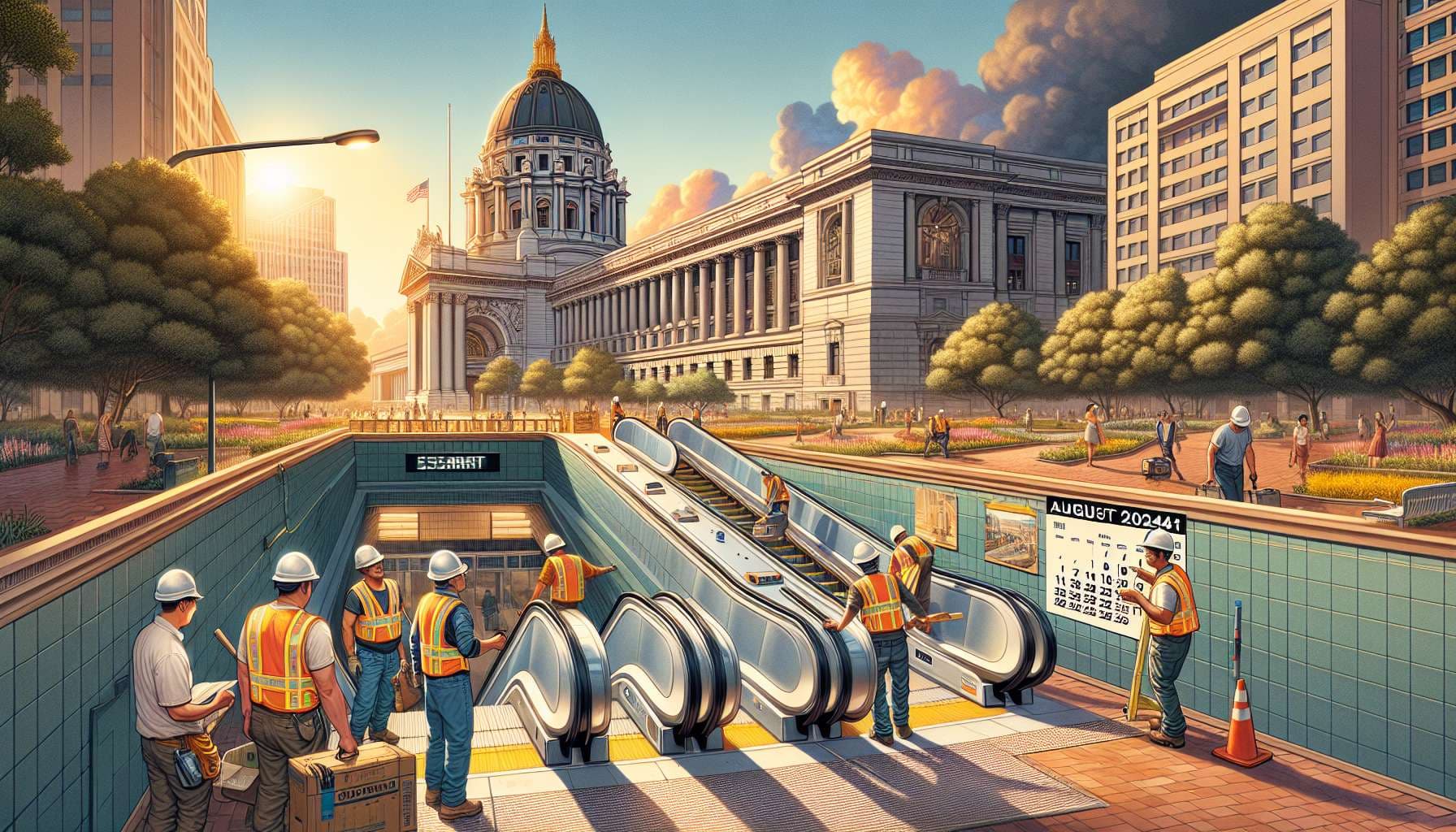 Will the new escalator installation in civic center happen before the end of summer 2024?