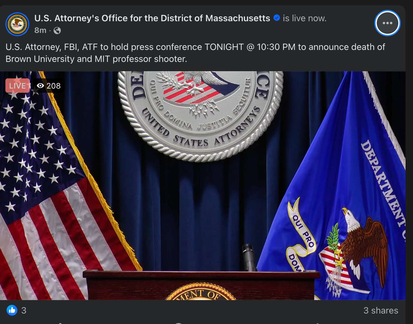 Police are investigating potential ties between the shooting at Brown University on December 13, 2025, and the shooting of an MIT professor on December 15, 2025. You can read more about that here: https://www.wpri.com/target-12/police-probe-potential-ties-between-brown-university-attack-and-mit-professor-slaying/.