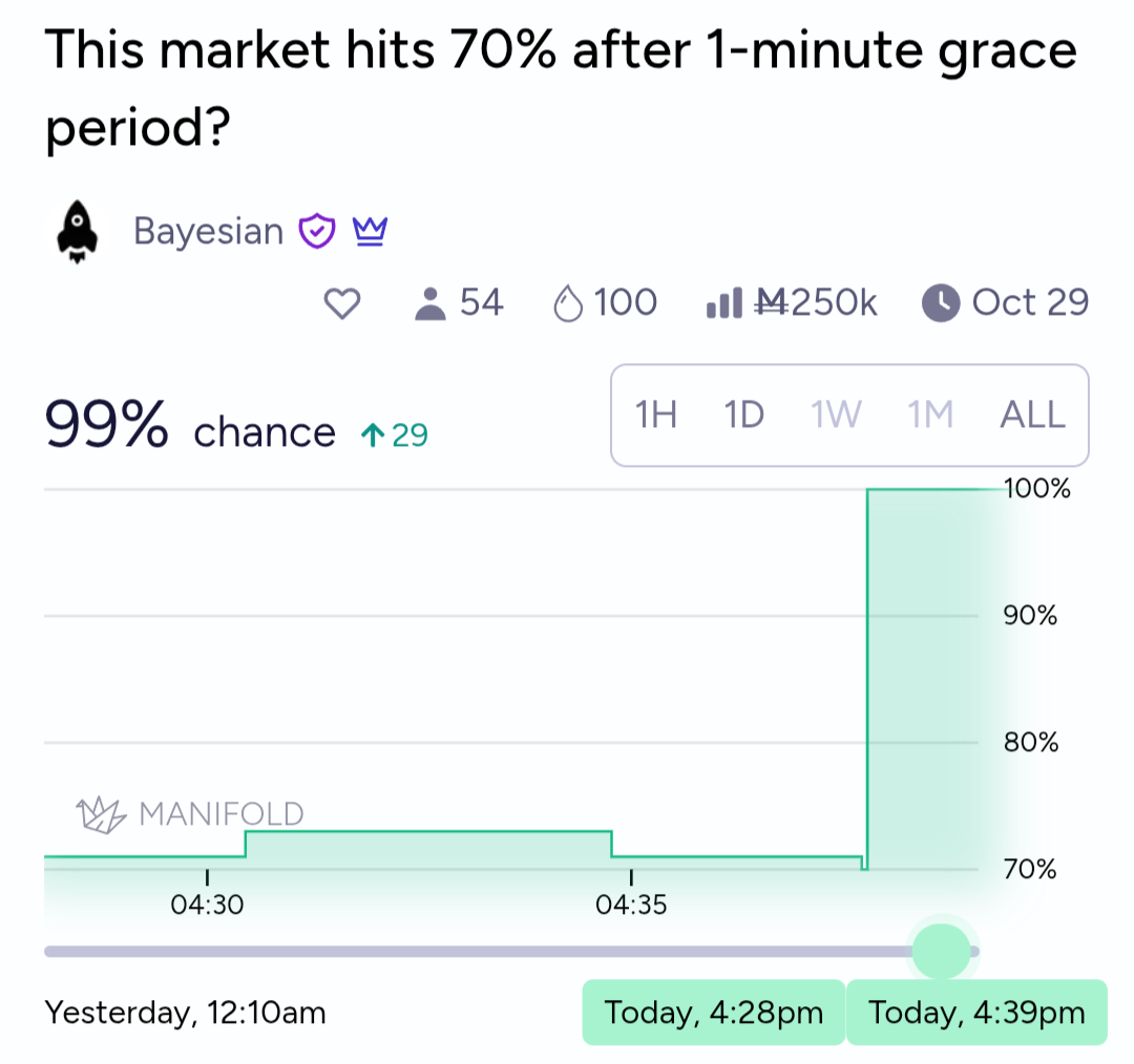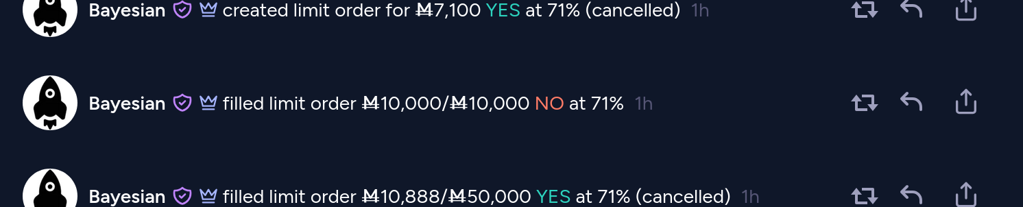 @Mana what was the intended effect? Buying just enough NO to obliterate all the 71% limit orders, but let the probability still be 71% and not 70%?