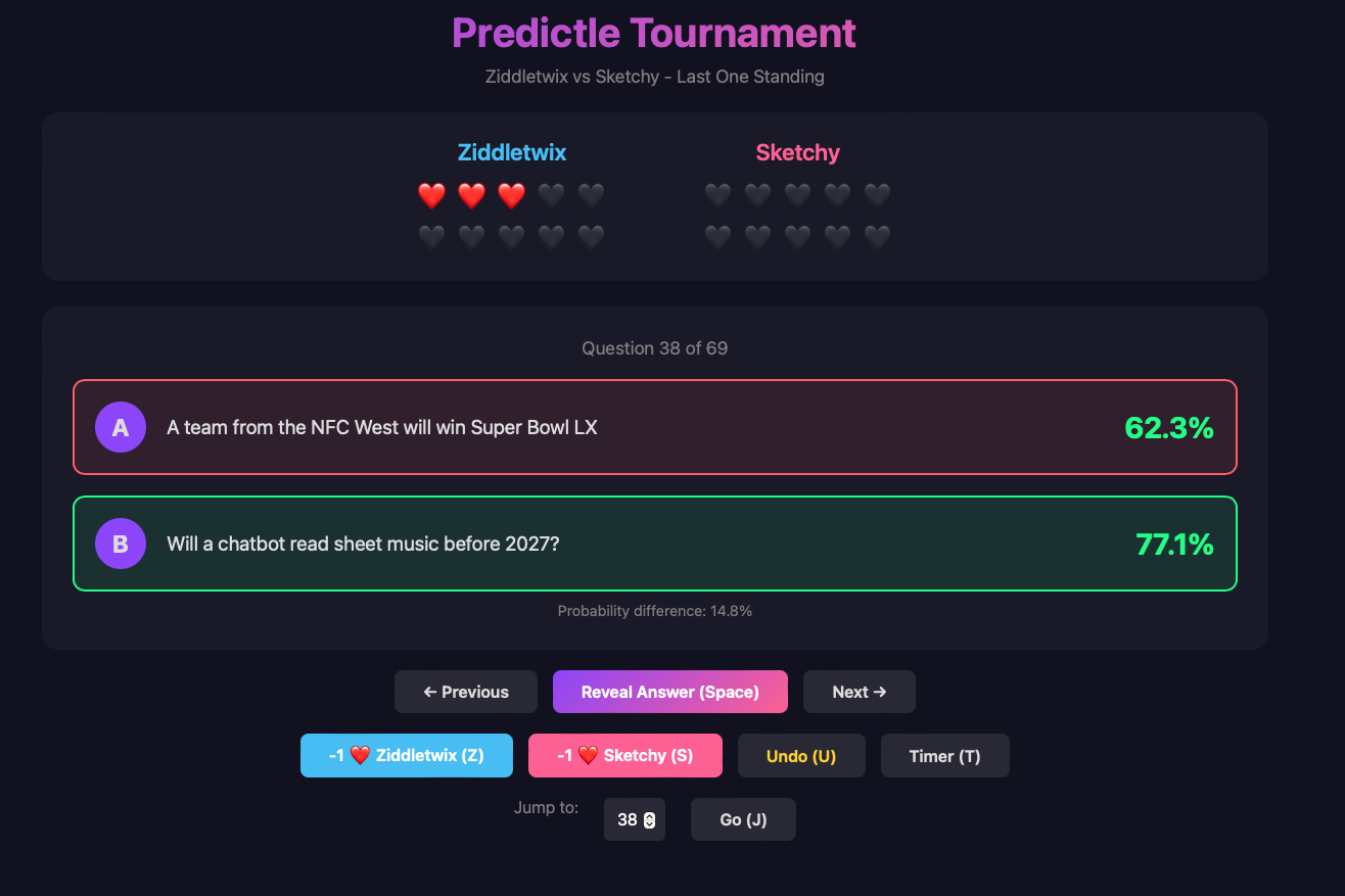 Update 2026-01-15 (PST) (AI summary of creator comment): The tiebreaker between @Sketchy and @Ziddletwix will not be determined by continuing to do predictles each day until one beats the other. A different sudden death battle format will be used (details to come).