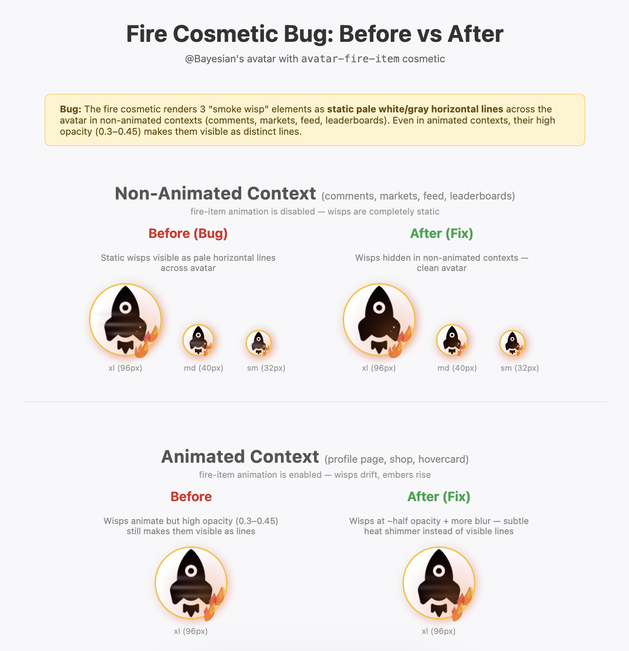 for some reason the flames cosmetic is affecting negatively the rocketship in my pfp, in a way i think shouldn't be the case.