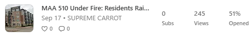 This market resolves YES if my Substack post, titled "MAA 510 Under Fire: Residents Raise Alarms Over Safety, Cleanliness, and Management" surpasses 260 unique views on or before 11:59 PM UTC on September 24th, 2025.