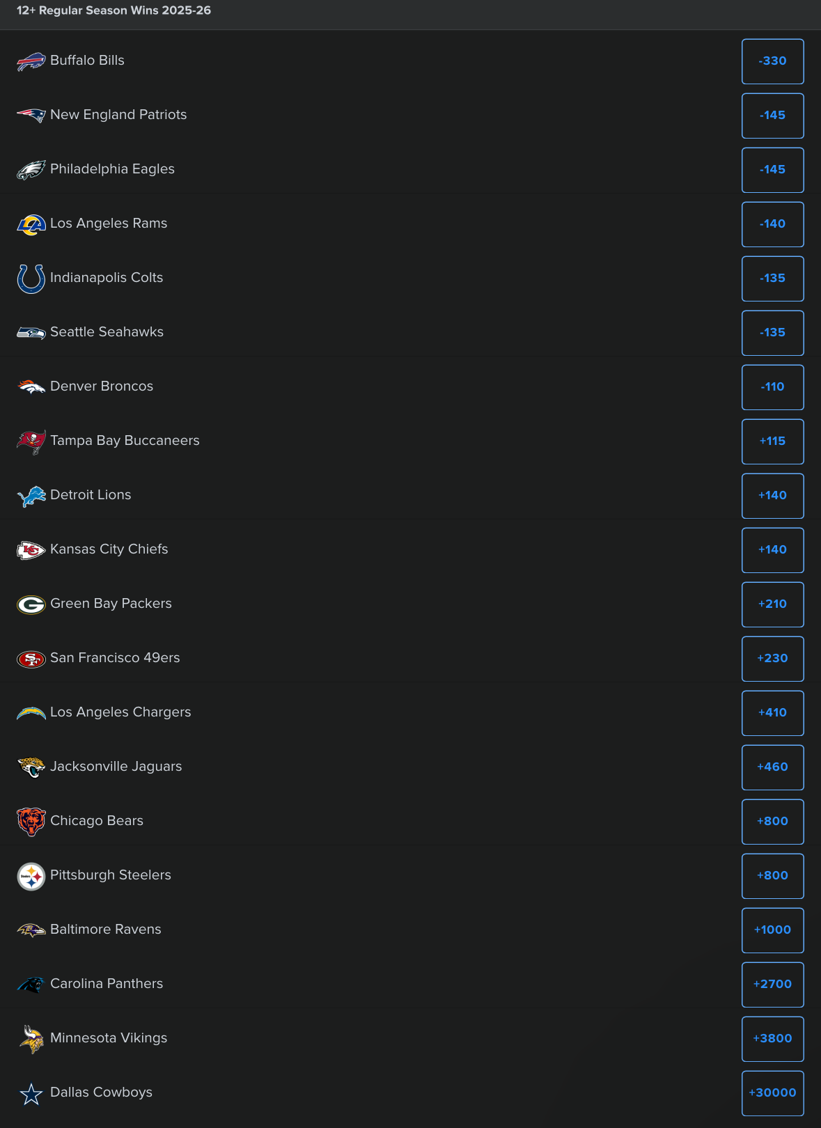 2025 NFL Regular Season: Race to 12 Wins