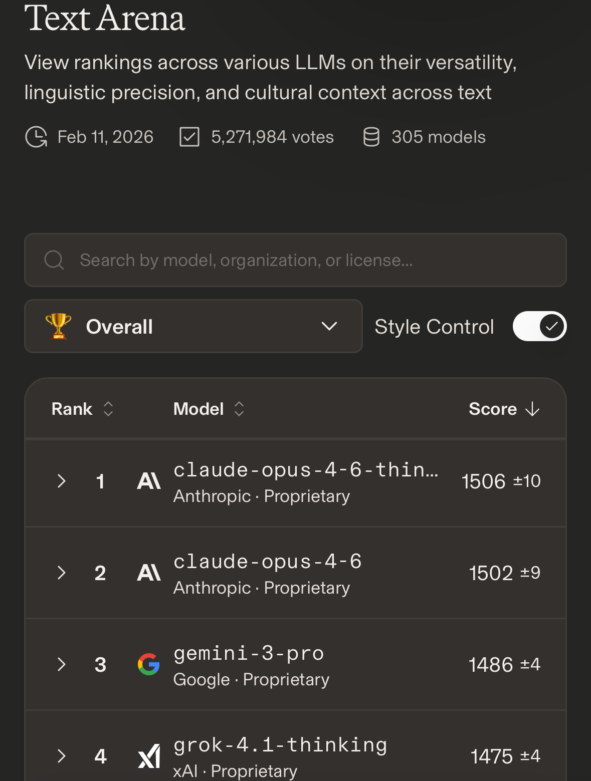 https://lmarena.ai/leaderboard/text