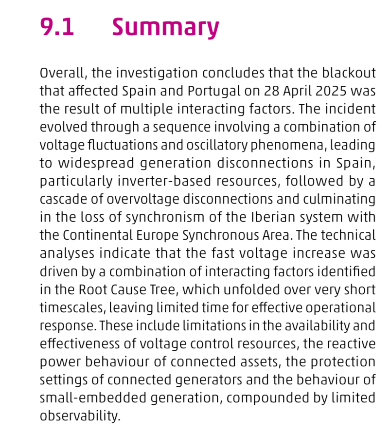 @Choms It's not so crazy, that's some of the narrative in Spain and Portugal as well. The former president of electricity operator Red Eléctrica said "a sudden excess of renewable generation in the system could lead to strong voltage fluctuations in the grid, resulting in the loss of generation", and some experts in the topic sort of agree with this.