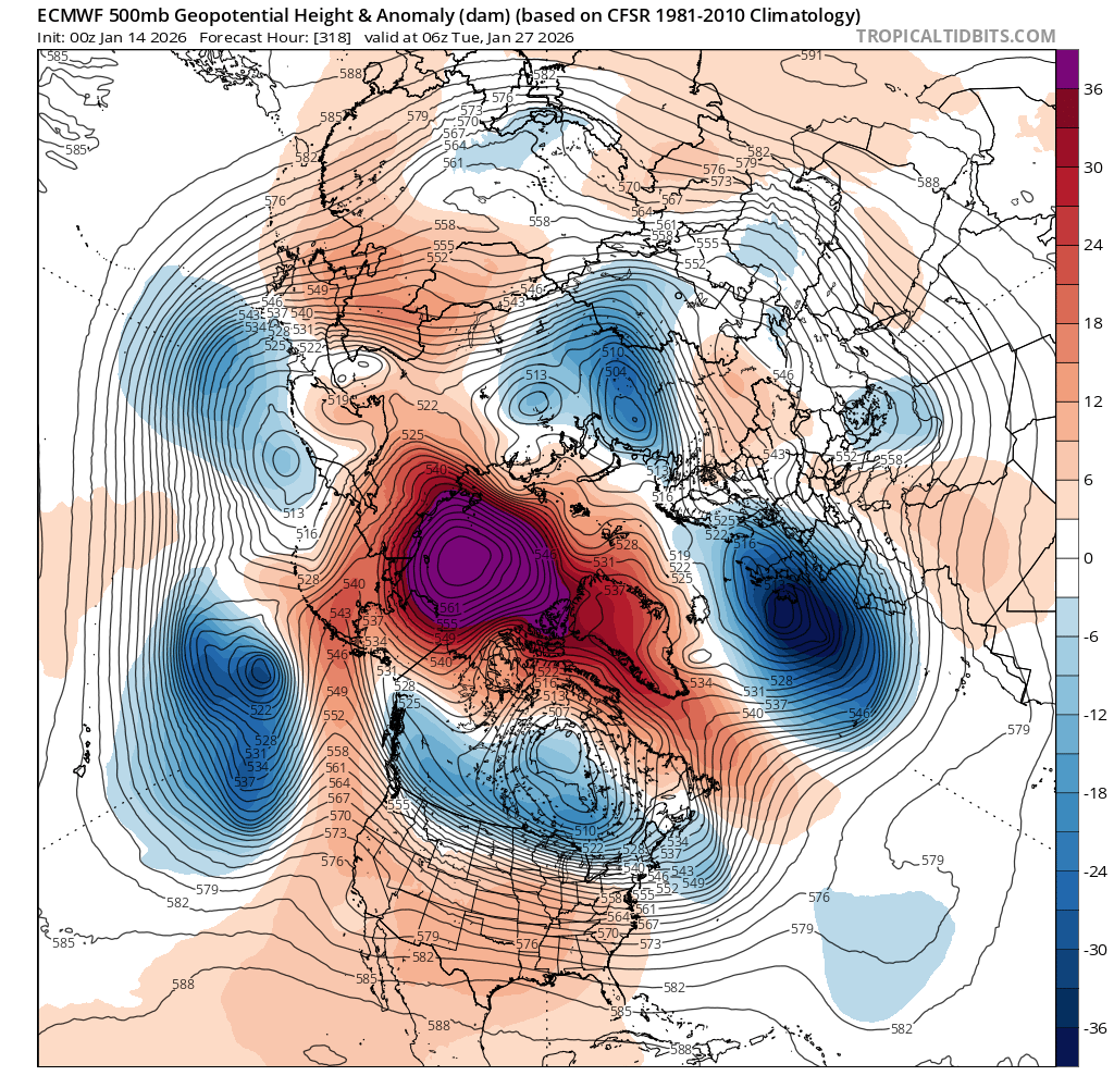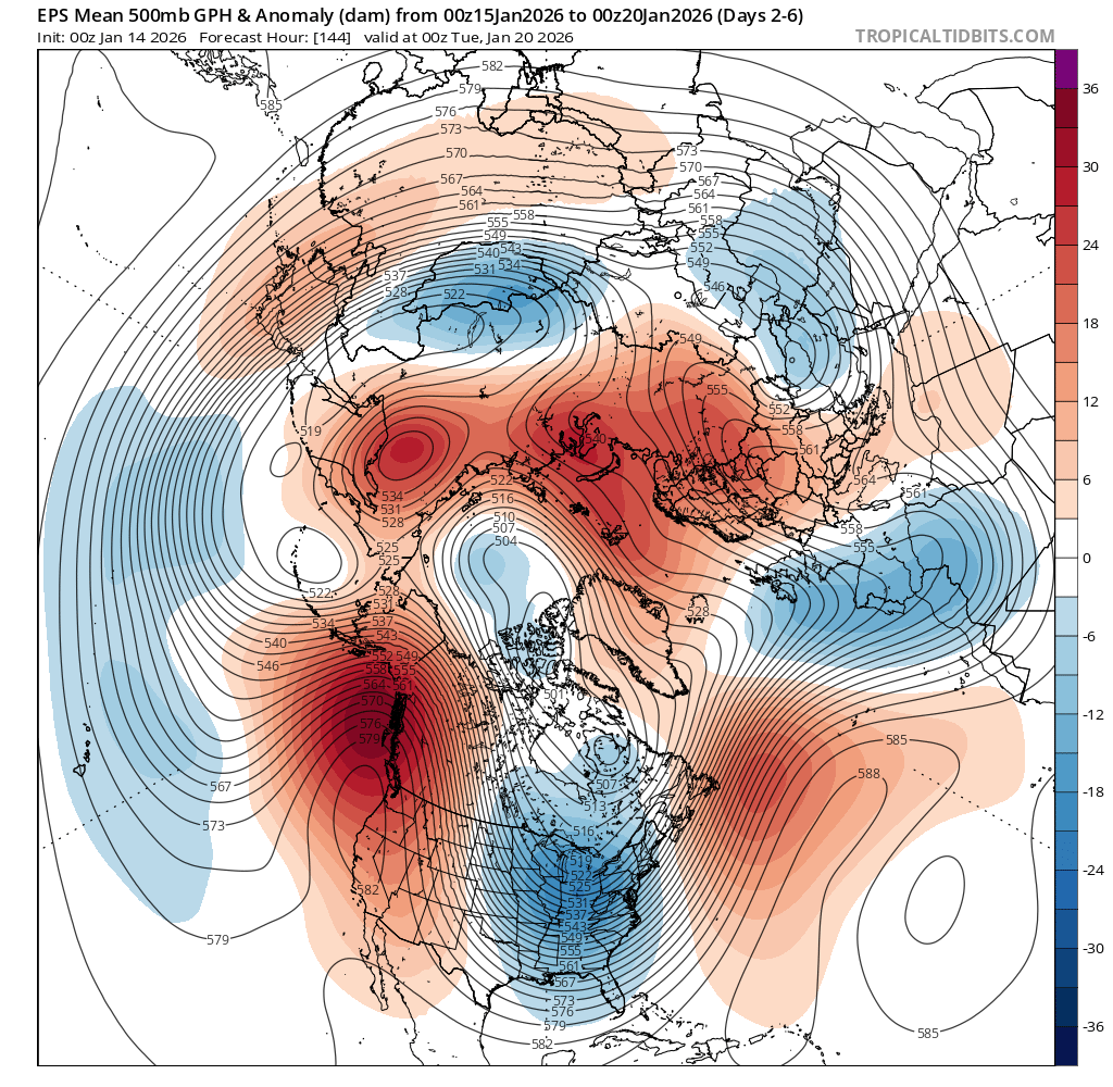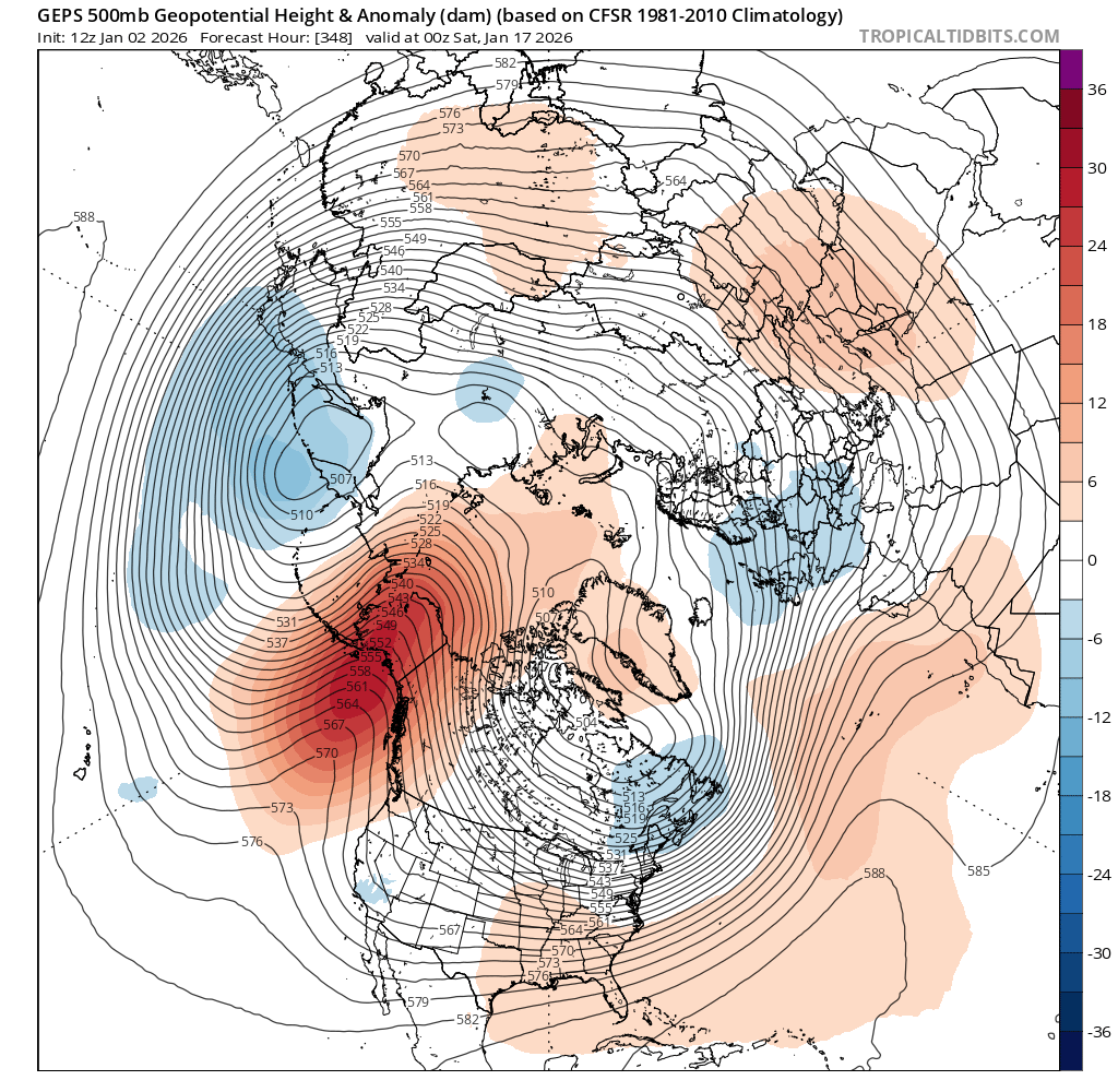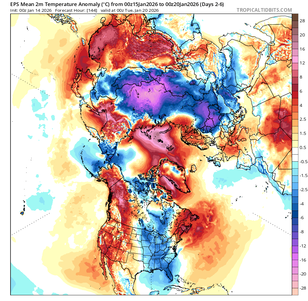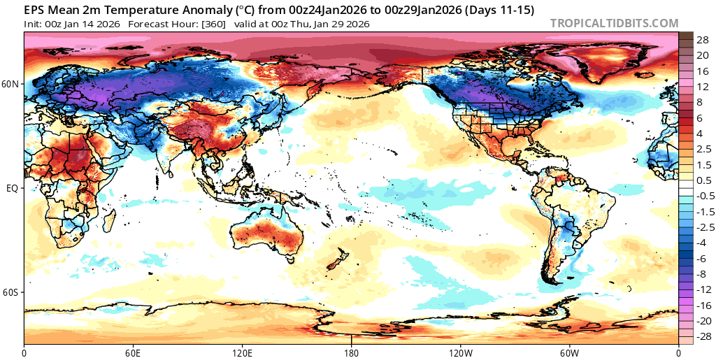 Based on climate priors for January, should expect some small warm up for second half of month, but given that week 3 is flat at the end of the medium range ensembles this doesn't look it's going to be the case this time....