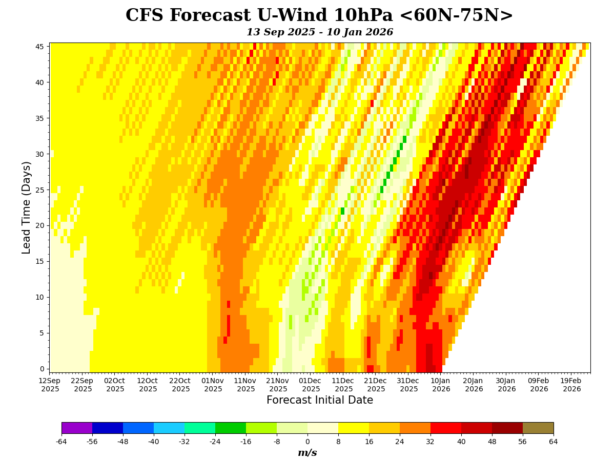 In the next week forecasts look like continued disruption to the NH jetstream resulting in more cold blasts for North America, and the last few runs in EPS/GEPS have shown a high developing over the Arctic afterwards for the remainder of the month, resulting in the cold Arctic air dropping down over Russia, US, Canada for the last week of the month; apparently this is a rare scenario....