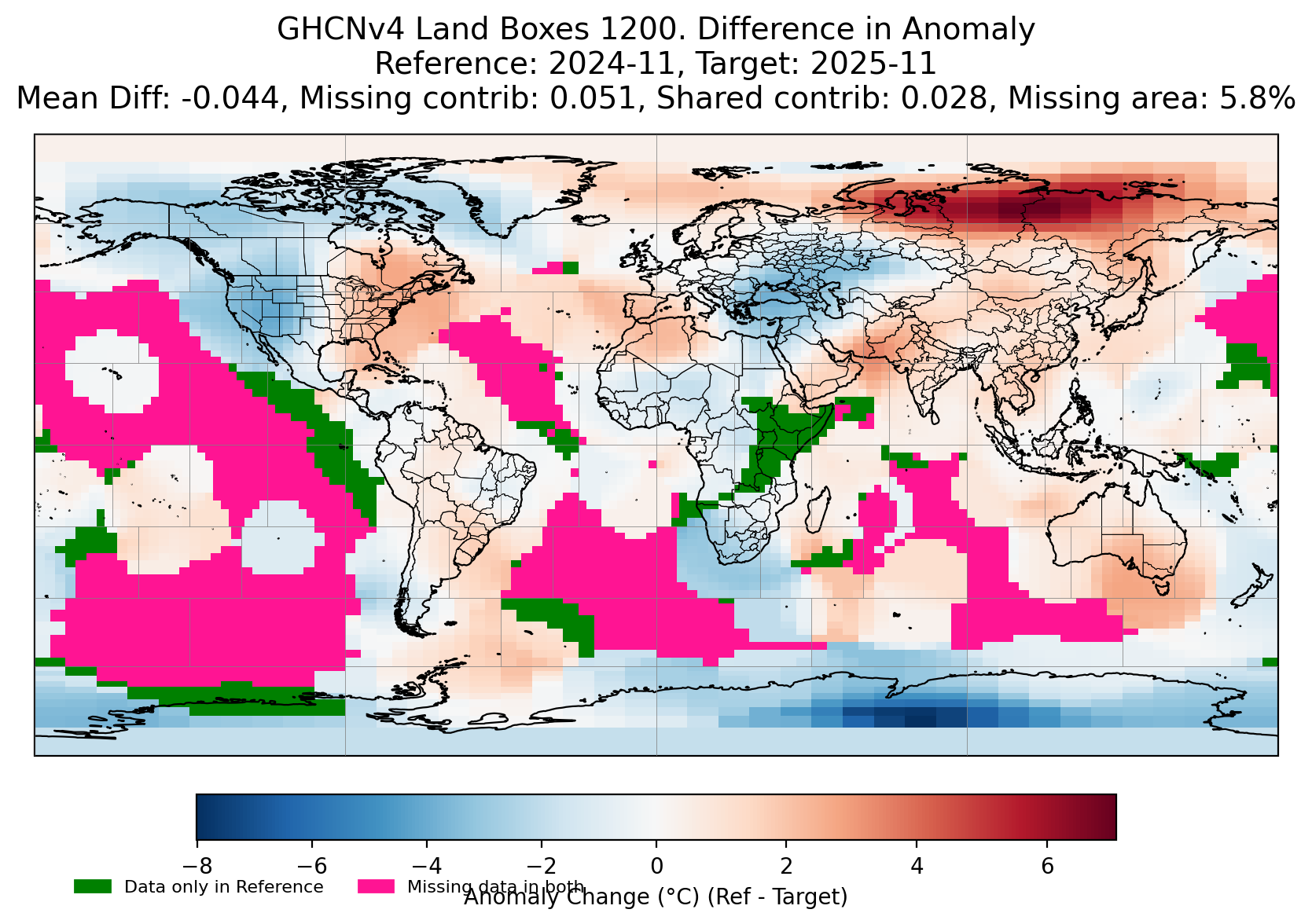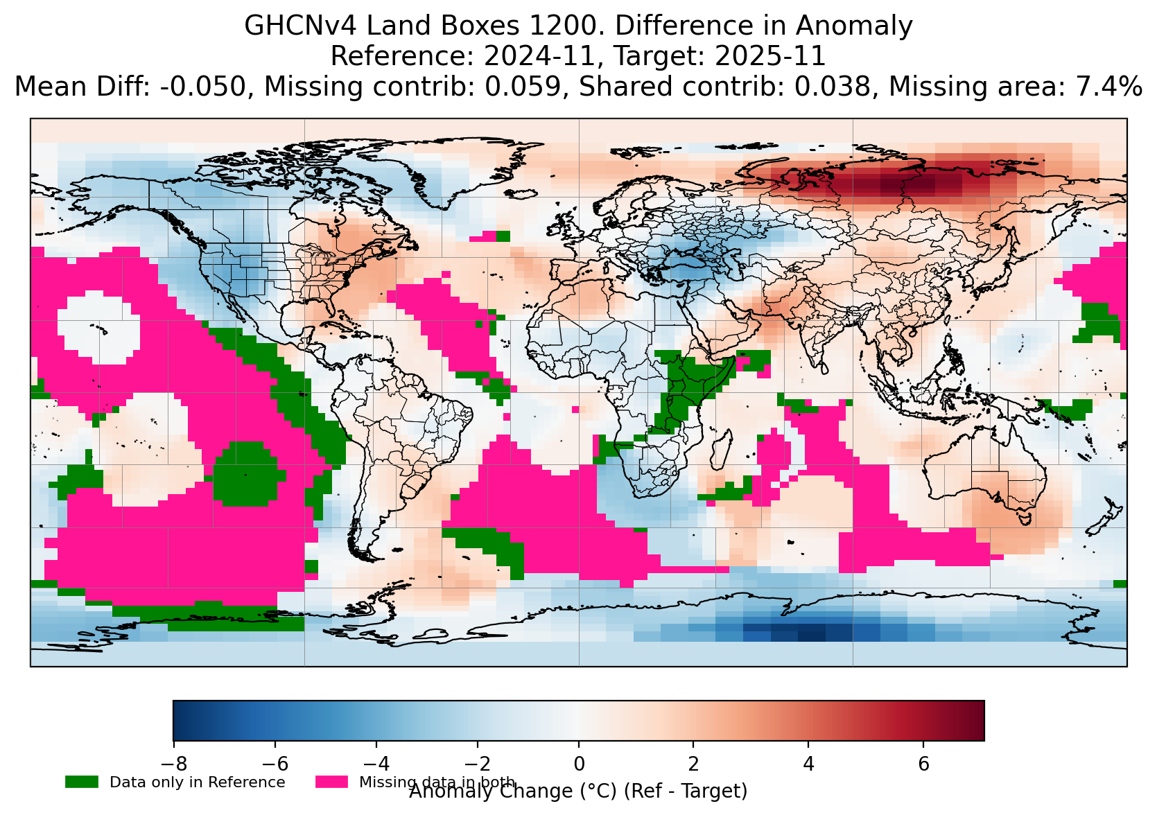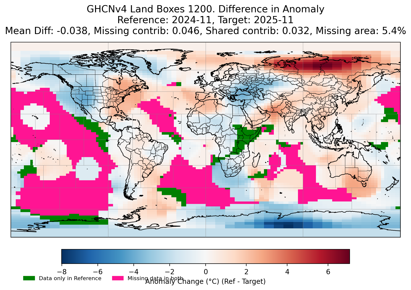 Comparing yesterday's landboxes with today, for at least the subboxes for the landboxes that already existed most of the contribution seems to have come from where I predicted, with the exception of a new Antarctica station coming in as well cooling its box a bit also.