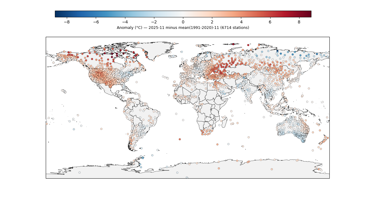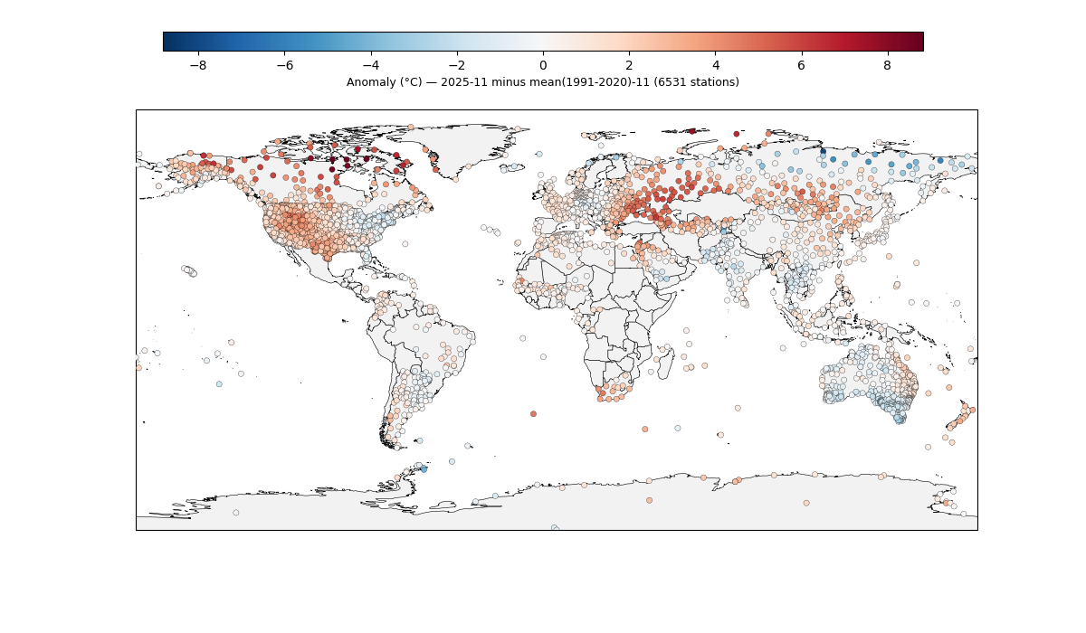 Based on the "new" stations that came in subsequently for Oct 4 (last month) and based on ERA5 I am guessing most of the countries that should come out with the next ghcnm (i.e. v4.0.1.20251203)), i..e Japan, Mongolia, Pakistan, Vietnam, Portugal, Uruguay in particular, should bring the gistemp down with tomorrow (New Zealand and perhaps a station in Antarctica being the exceptions that could bring it up a bit to counter that), so overall I'm expecting subjectively based on this tomorrow for it to go down (hard to predict how large NZ will shift the SH temps upwards and I haven't been skillfull at these subjective predictions so far)...
