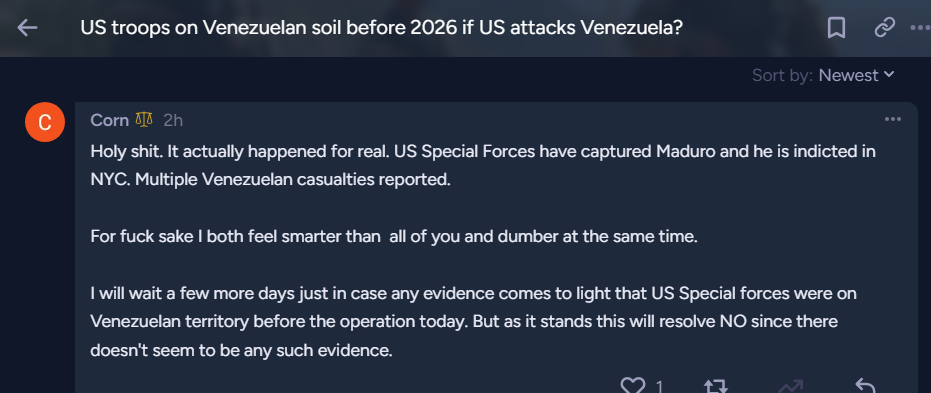 @JoshuaTindall we are seeking verifiable evidence that special forces were used in the extraction of Venezuela’s president. If this is the case, and not just CIA or other intelligence groups, then requirement #1 will be satisfied..
