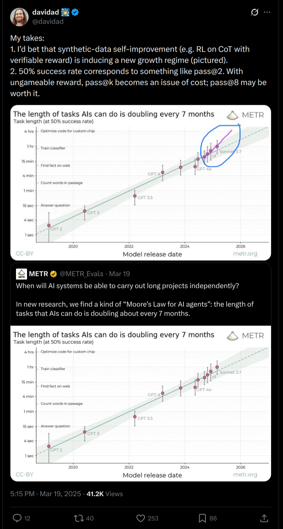 If by January 1st 2040 no such interval can be robustly identified, or if the evidence is best interpreted as “impressive but roughly exponential” rather than superexponential, the market should resolve NO. Borderline cases are ultimately at the discretion of the market creator (and Manifold moderators if needed), who should explain their reasoning at resolution time.