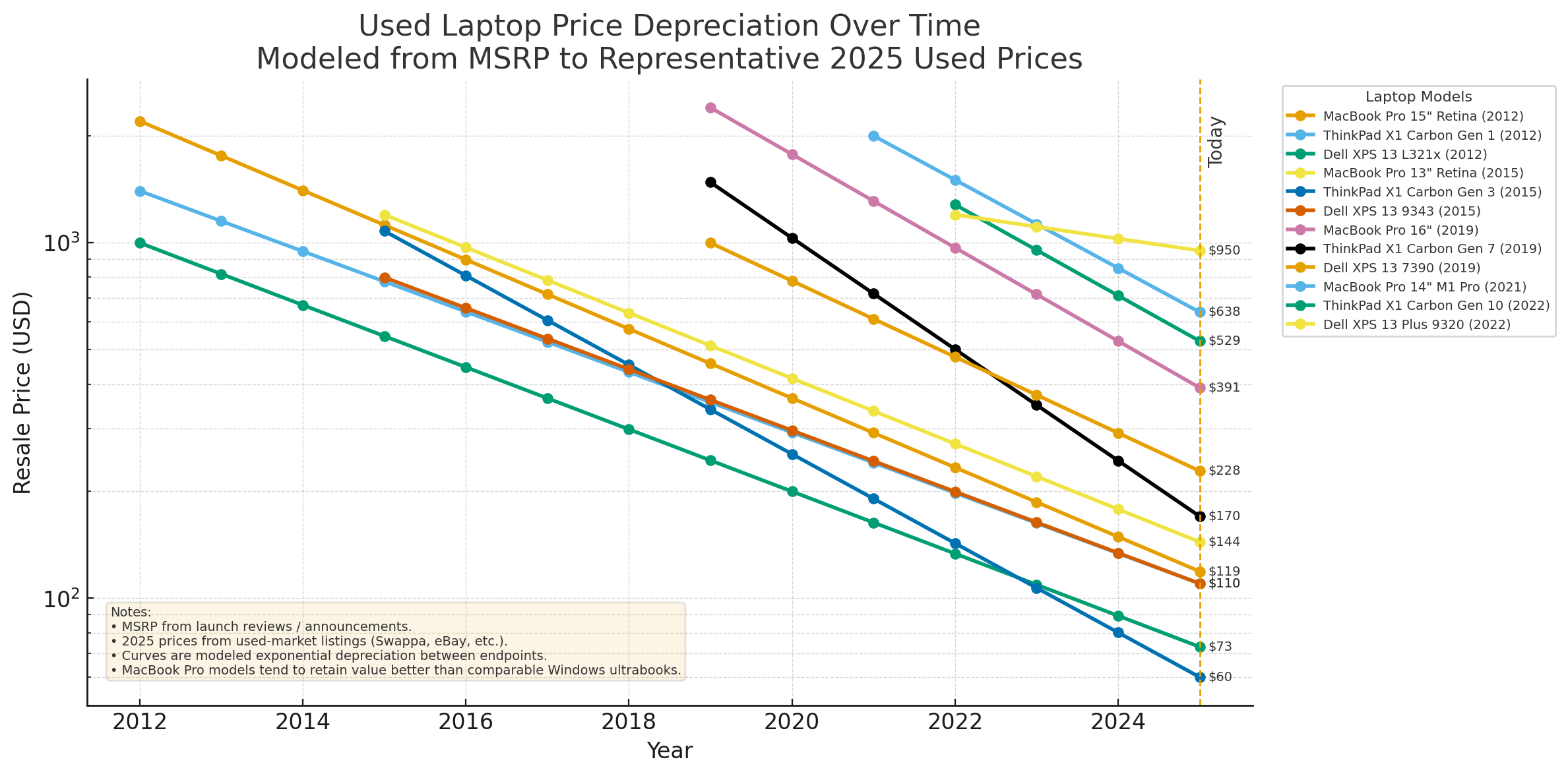 For standard configurations of that line, the typical used resale price is at least equal to the device’s original MSRP in real terms,