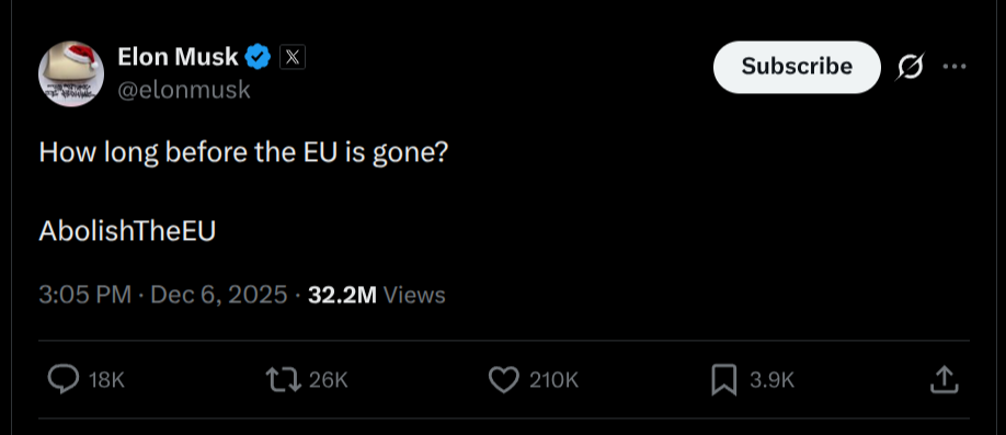 The market resolves as soon as the first of the two events clearly happens: Elon Musk’s death, or the EU’s cessation (as defined above).