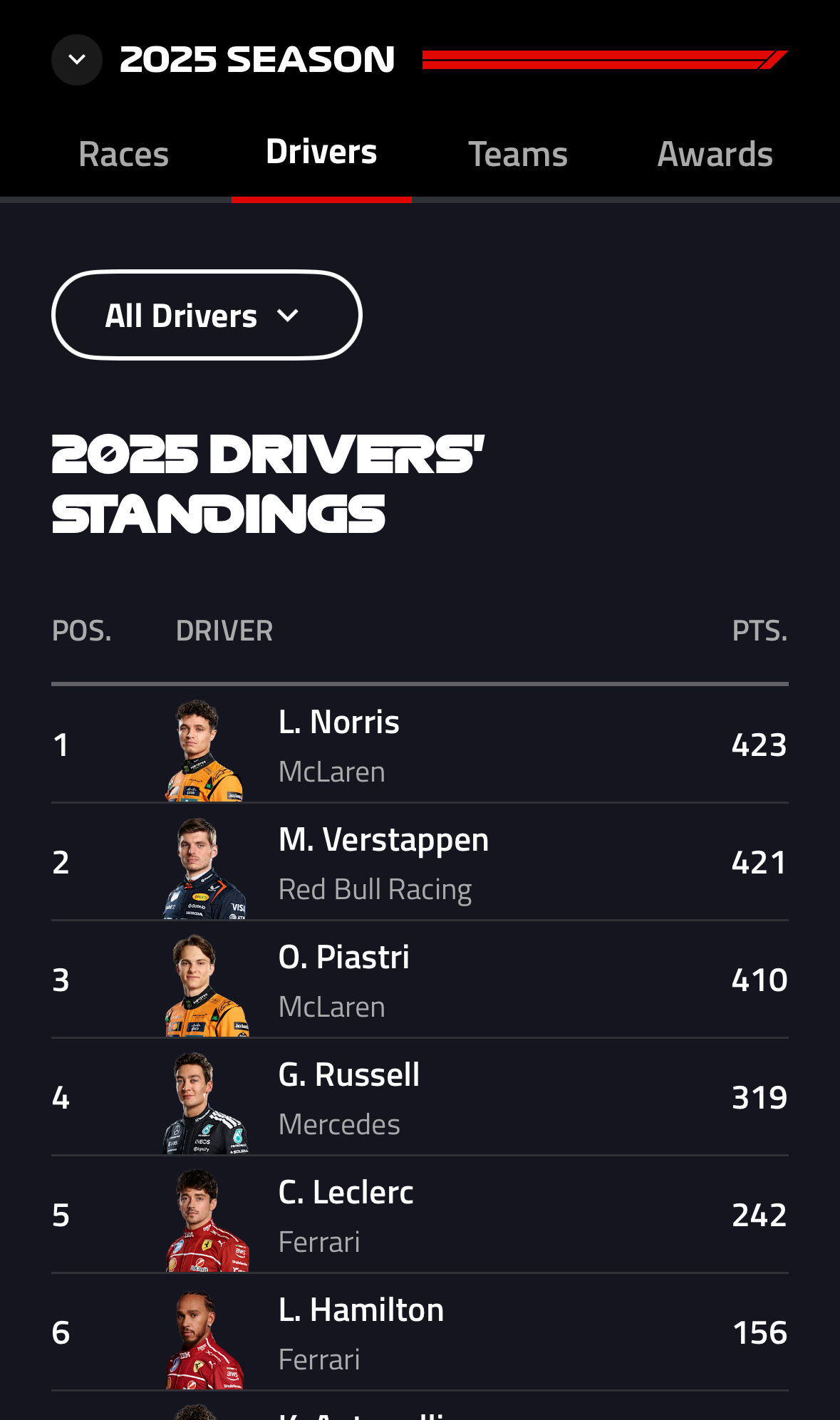 @AlexanderTheGreater Yes, but 40 points are still a lot to recover. I get that Verstappen chances are increasing, but being 41% vs Piastri 32% is nonsense. Right now Oscar is still 1st with a discrete advantage. If he suddenly starts delivering good results again the championship will be locked