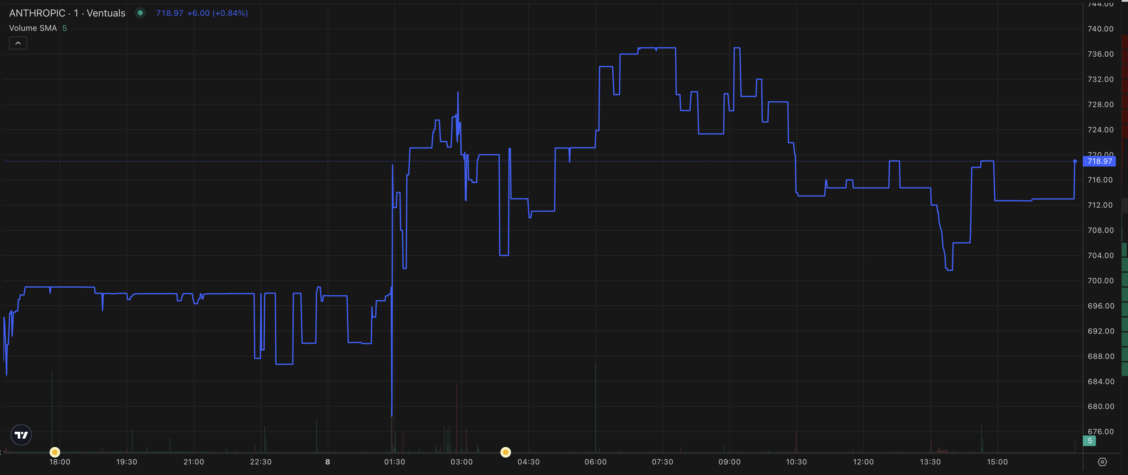 For example, over the last 24 hours, here are the price graphs of Anthropic and OpenAI: