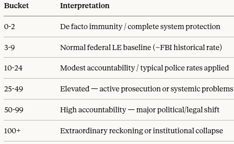 The fact that this includes a not insignificant time period for the administration following the current one to have the opportunity to try and convict ICE employees makes this much harder to forecast since there is such a high level of unknowns there.