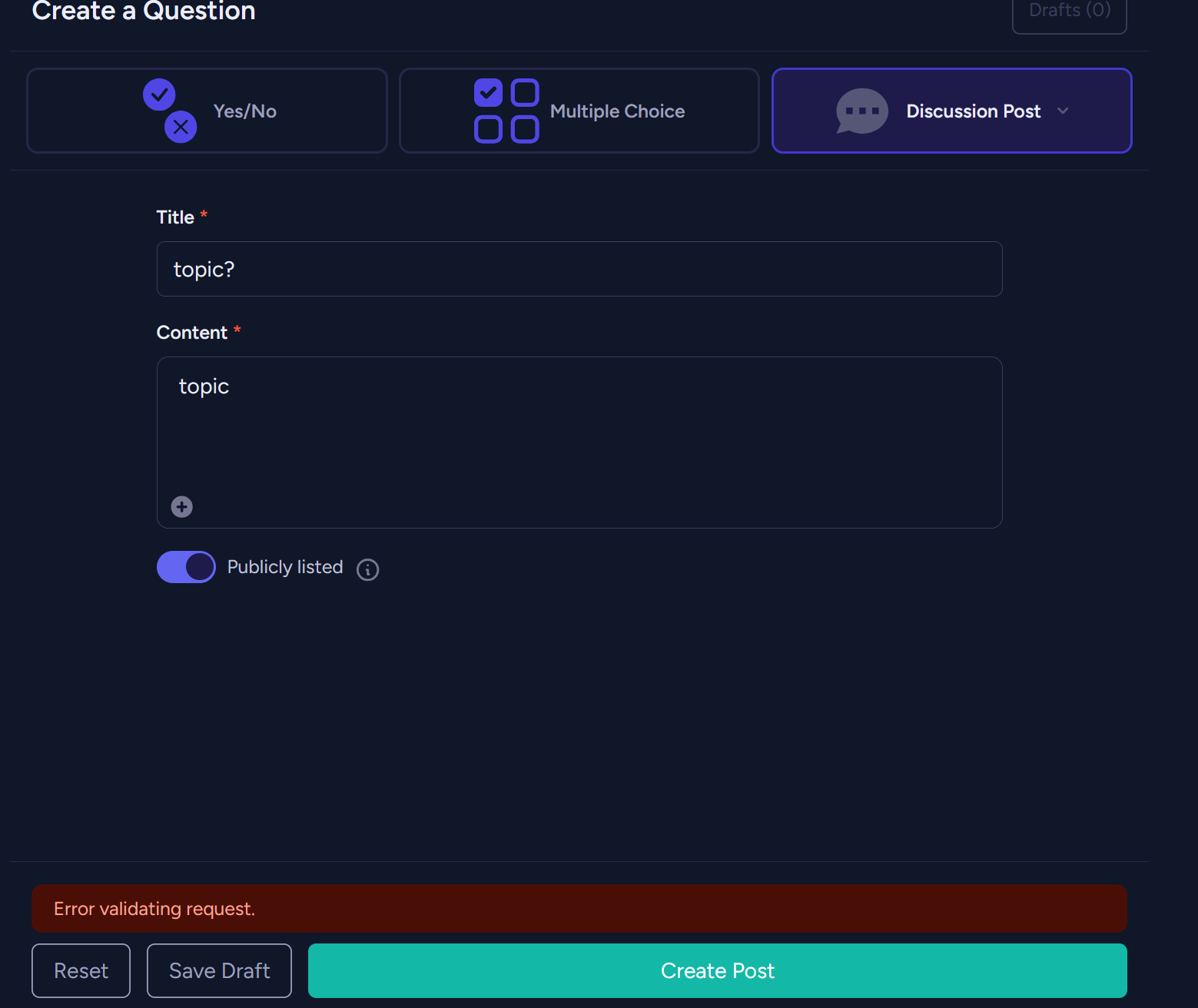 - Drafts now require a title or description to saveThose changes now live here on the vercel preview