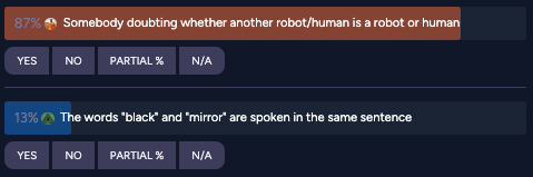@HenriThunberg it’s been a while since I watched the season. But I think the black and mirror one safely resolves as NO. Harder for me to provide guidance on the robot question