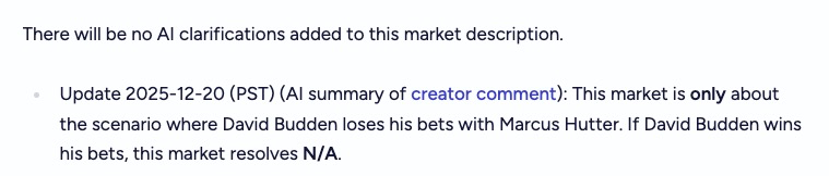 Manifold recently added a feature where AI can edit my market description without my consent. Naturally these edits are terrible, frequently containing incorrect information and not understanding what the market is about at all.