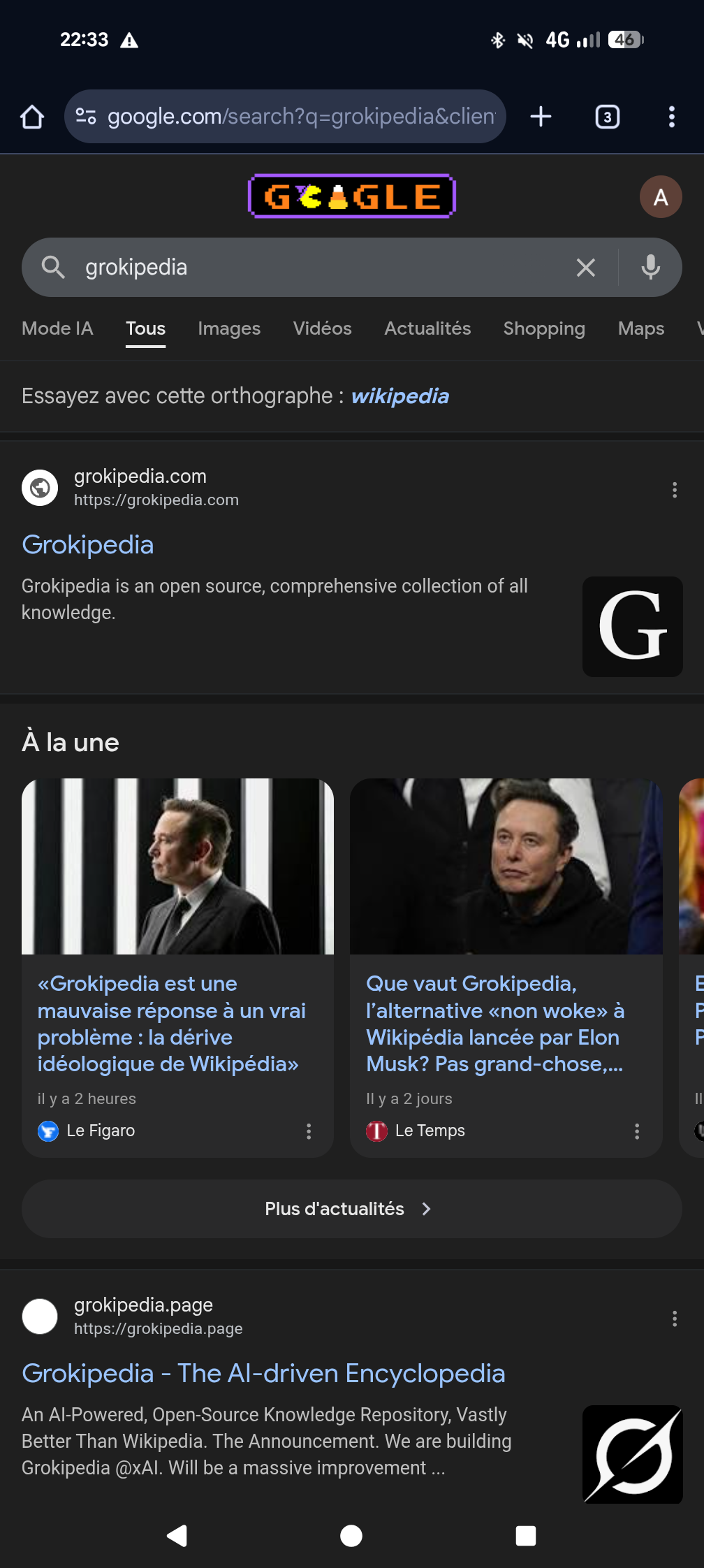 When I search "Grokipedia", Google ironically says "Did you mean: Wikipedia".