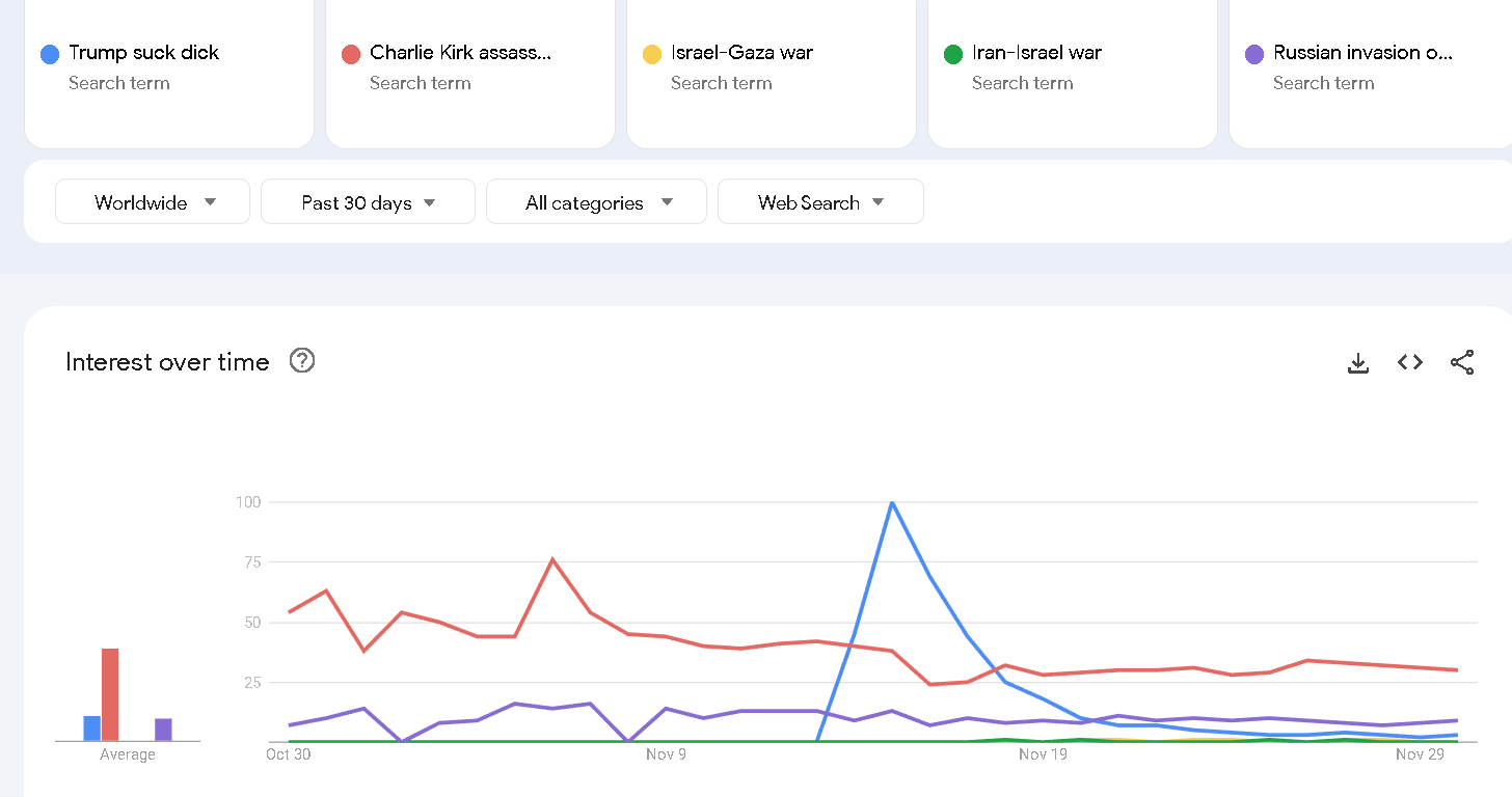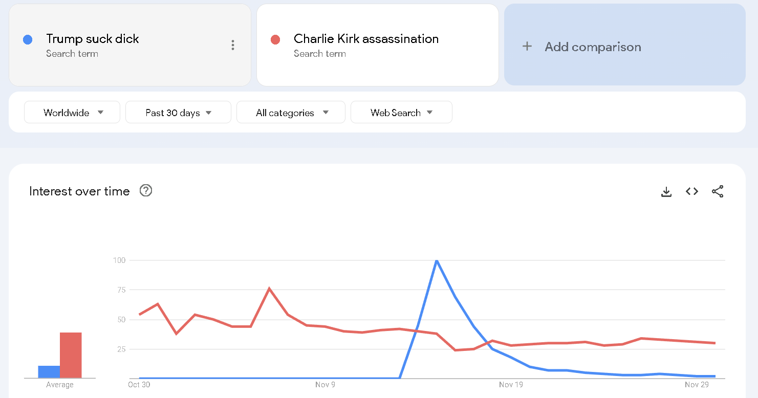 This market resolves YES if, during November, there is a Google search term which spikes like crazy. This is determined based on the following method: