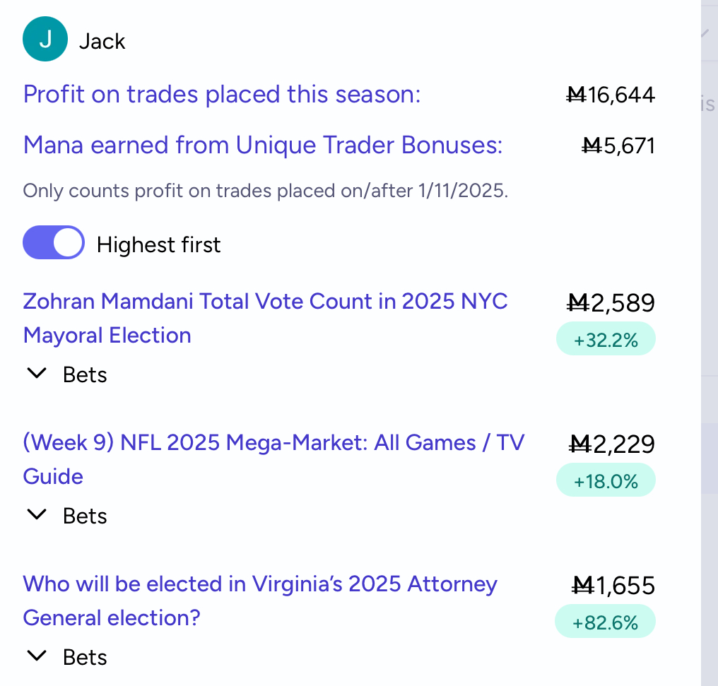 This market is unranked so creator trader bonuses and profits I make from this market DON’T count towards leagues