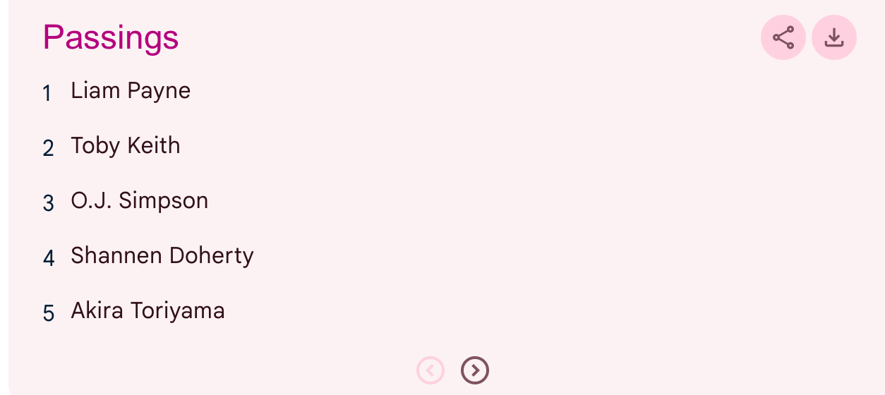 Resolves to the people listed on the 2025 Google Year In Search trend, for the catergory of ‘Passings’ or similar. If it is called something similar such as Deaths or Losses, will still be used.