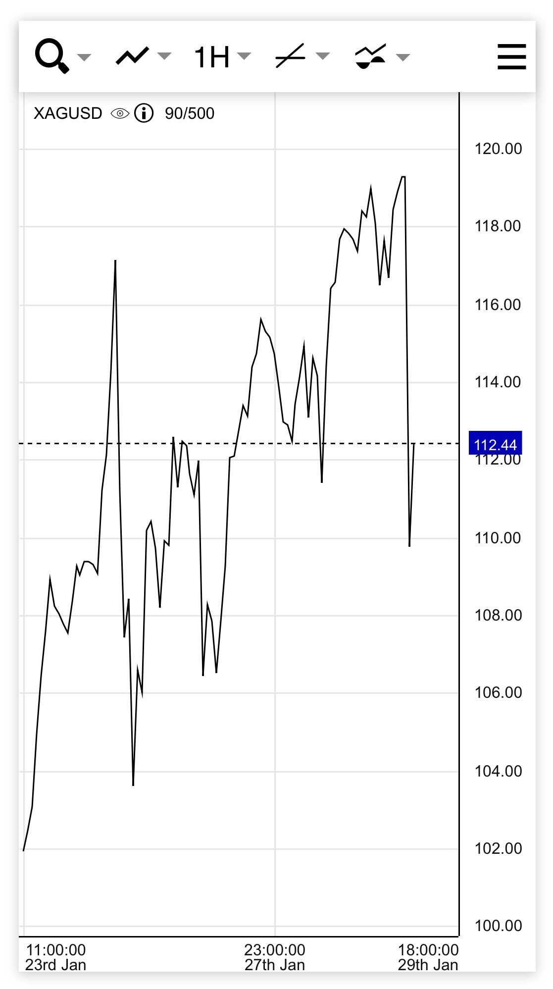 Resolves based on silverprice.org 1h line chart, Silverprice, USD spot.