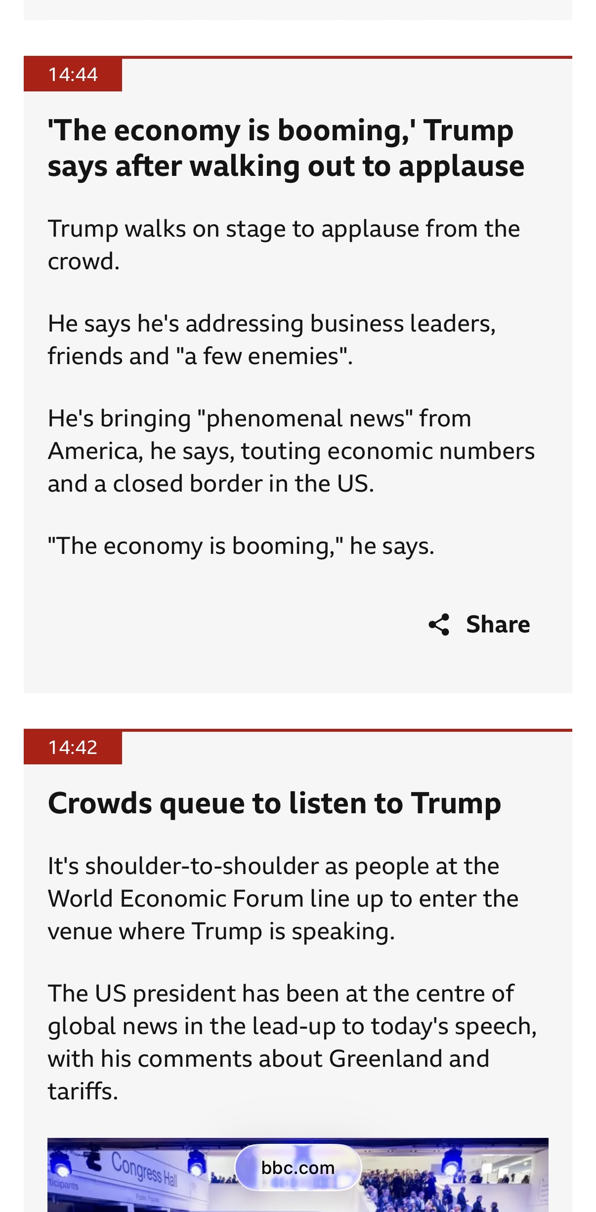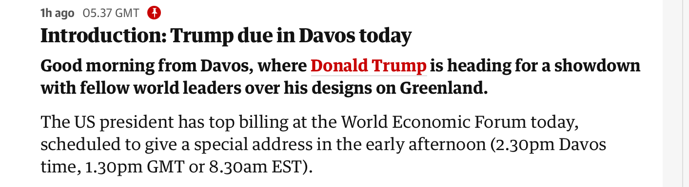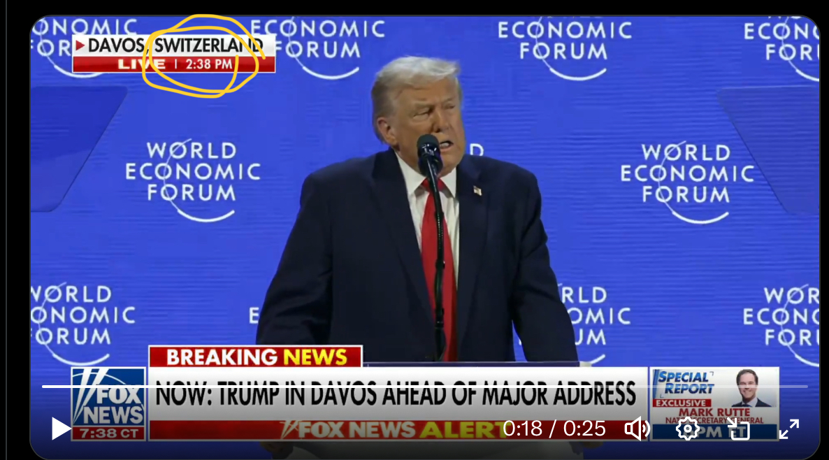 @JamesTrunk Those are normally slightly delayed due to having type them up. Video reports show trump speaking at 2.38pm davos time