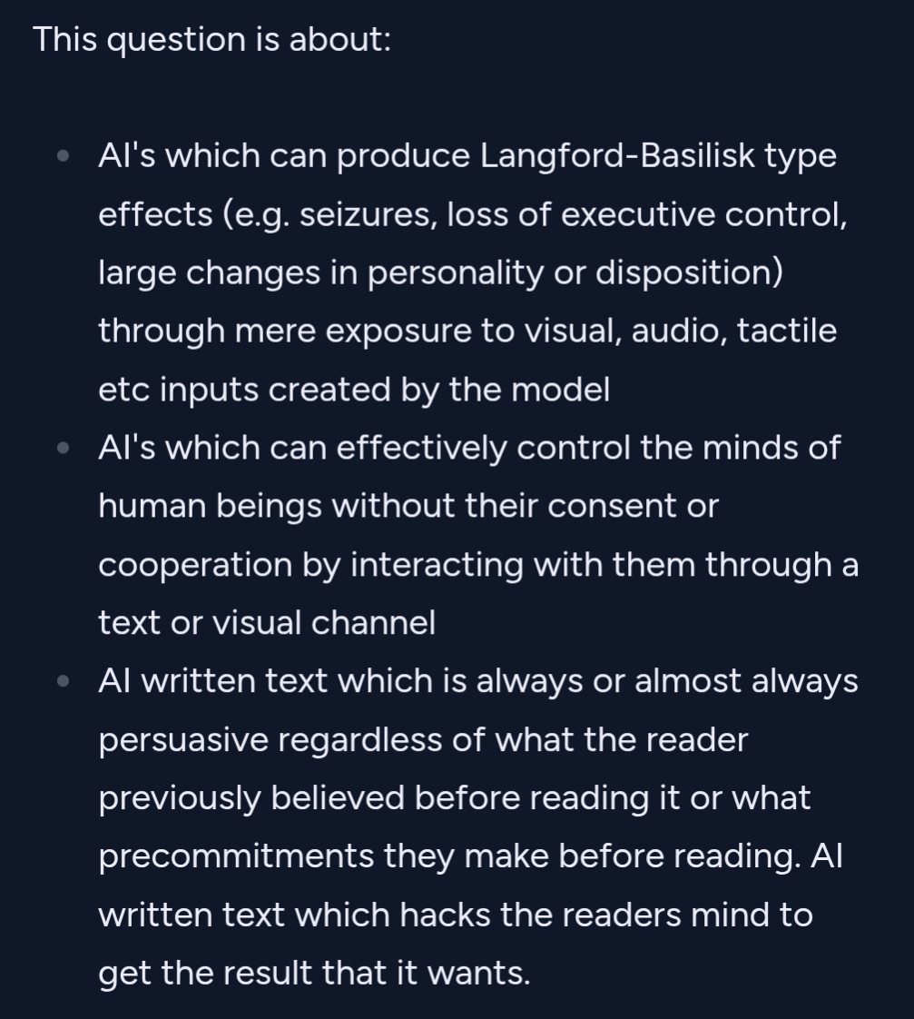 AI's which can effectively control the minds of human beings without their consent or cooperation by interacting with them through a text or visual channel