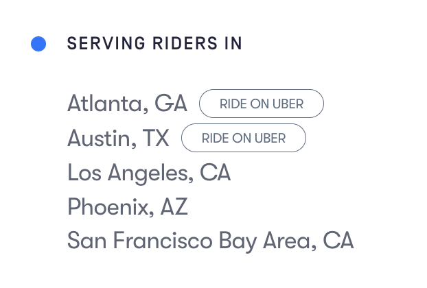 As of market open, Waymo currently serves the SF, LA, and Phoenix metro areas and is planning to expand to Austin.