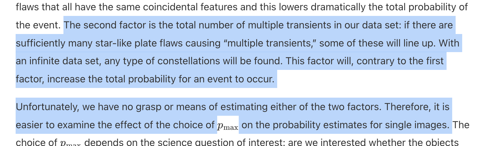 I don't know if this is a knockout as there are "only" ~2k photo plates in POSS-I and there's other argumentation in the paper beyond the likelihood of 'transients' lining up, but it's not clear to me why you can just... ignore this concern as they do here