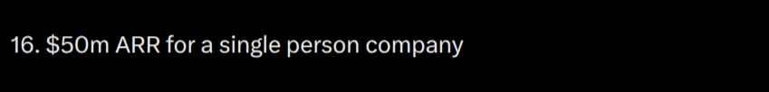 Another manifold market asks whether there will be a single-person operated unicorn company (valuation over 1 billion USD). I take it a step further and ask whether it could be entirely self-funded, self-owned, or otherwise an example of “pulling up by one’s bootstraps”.