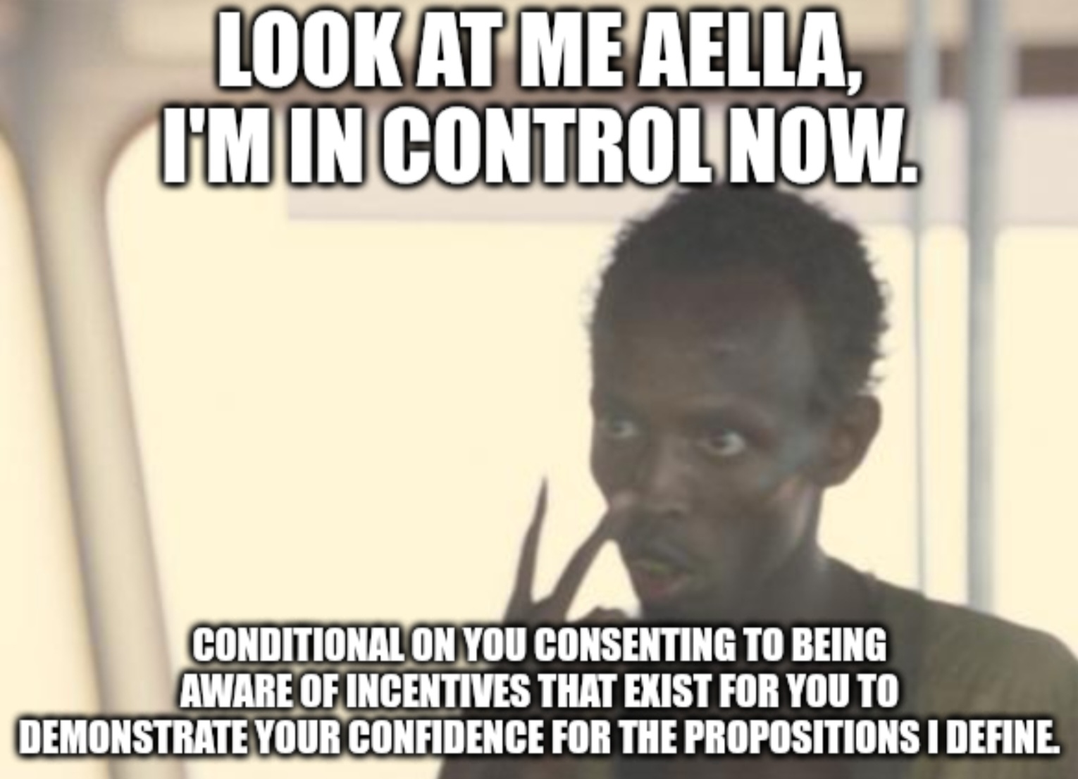 "I want my audience to control me by forcing me to define a confidence for propositions that they then site in arguments to embarrass me publicly and shame me into updating my priors."