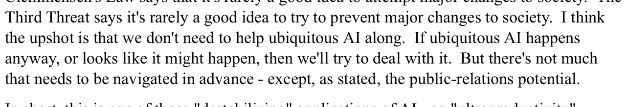 @MartinRandall That was a great post. I’m not sure where I fall on the AI risk question but the behavior of the Doomers given the stakes they claim has always struck me as strange