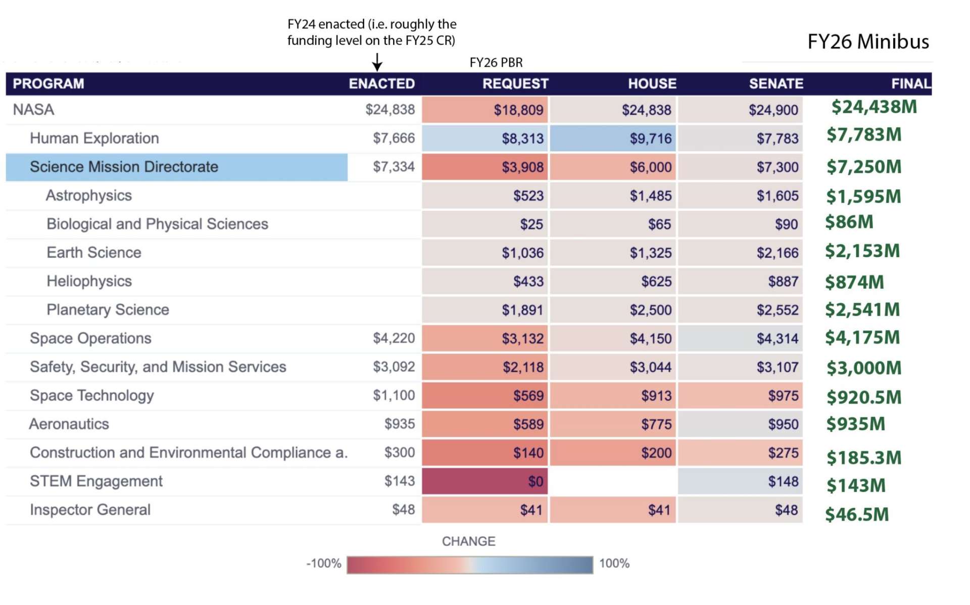 NASA's budget has been declining since 2023, with a steep cut requested by the Trump administration in 2026. When the FY27 budget is (eventually) passed, will it be larger than it was for FY25?