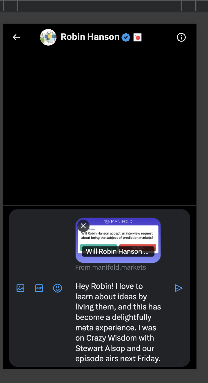 Robin Hanson was a guest on Crazy Wisdom. I was also a guest on Crazy Wisdom, and my episode airs next Friday.