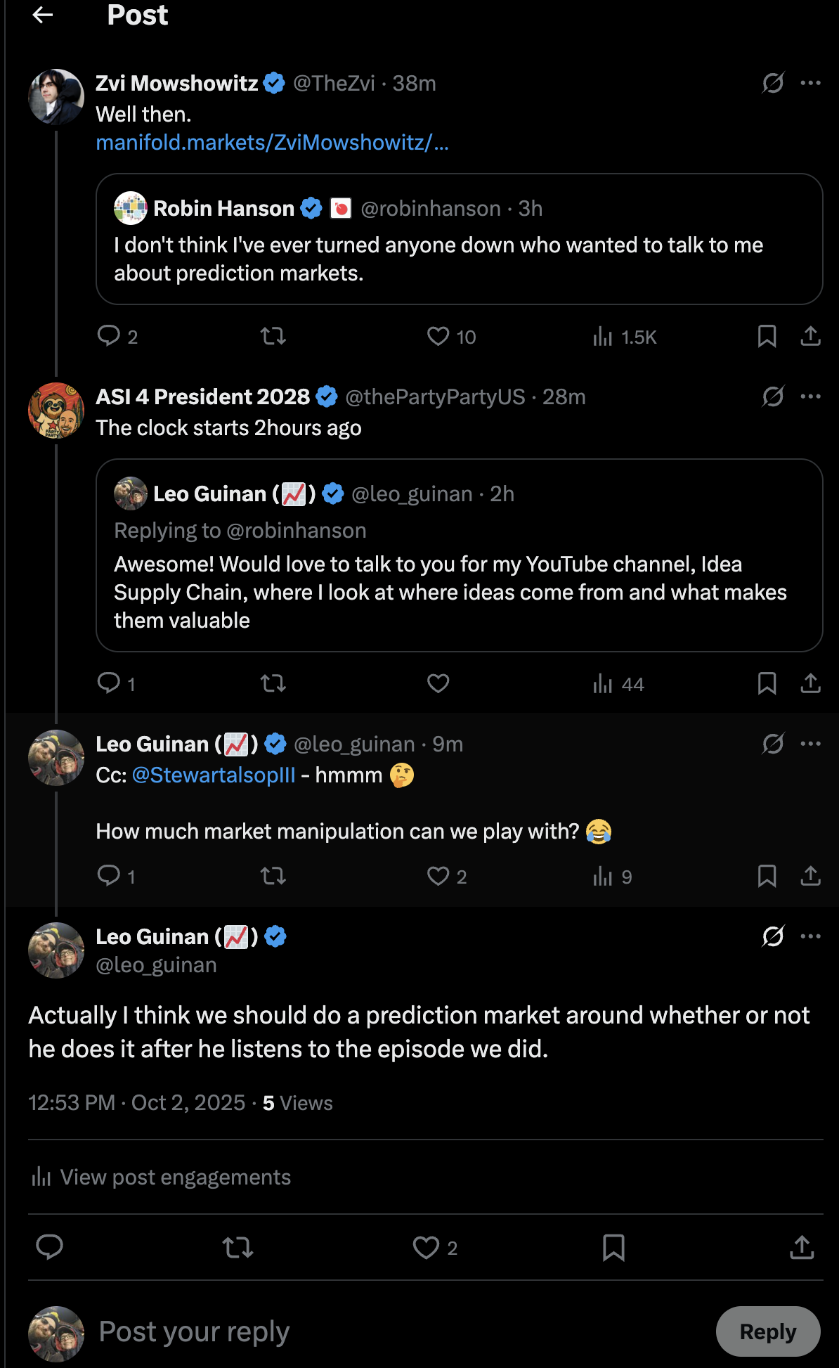 Will Robin Hanson create a market on Manifold by the end of 2025?
