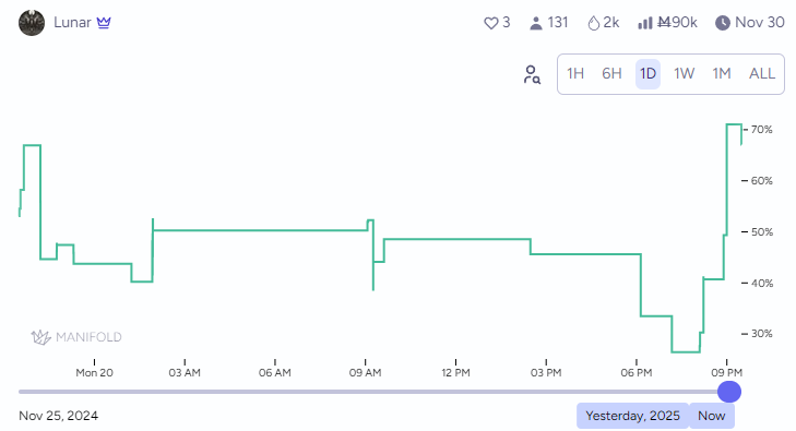 @BlitzEver I don't understand why this market is so bipolar. It has 80 traders as well! Very unusual for Manifold.