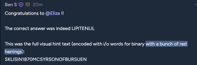 Update 2026-01-01 (PST) (AI summary of creator comment): Regarding the "Binary" answer option: The creator considers the use of I and O in the puzzle to be binary in a basic sense (e.g., whether words contain I or O),