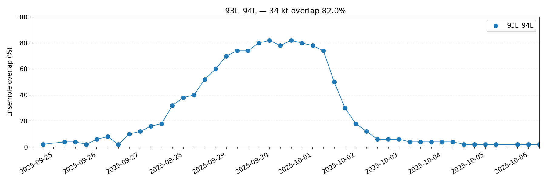 Relying on Google/06Z, some rough calculations suggests 93L and 94L have a good chance for overlapping as a TS by the end of the month....