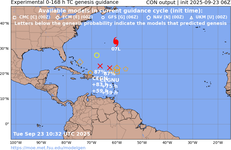 I think I will then rely on a simple prior calculation using historical frequency for October+ from my climate notebook (~around 10% or less), and then multiply it 2-3 times .-- even if this year ends up back-loaded I wouldn't expect the probabilities to be several multiples in the more limited areas of likely development for later in the season...