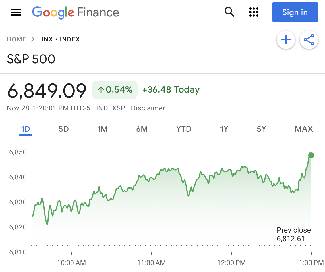 @Magnify "closing value on Nov 30, 2025," well that's Sunday, so today's close: 6849.09